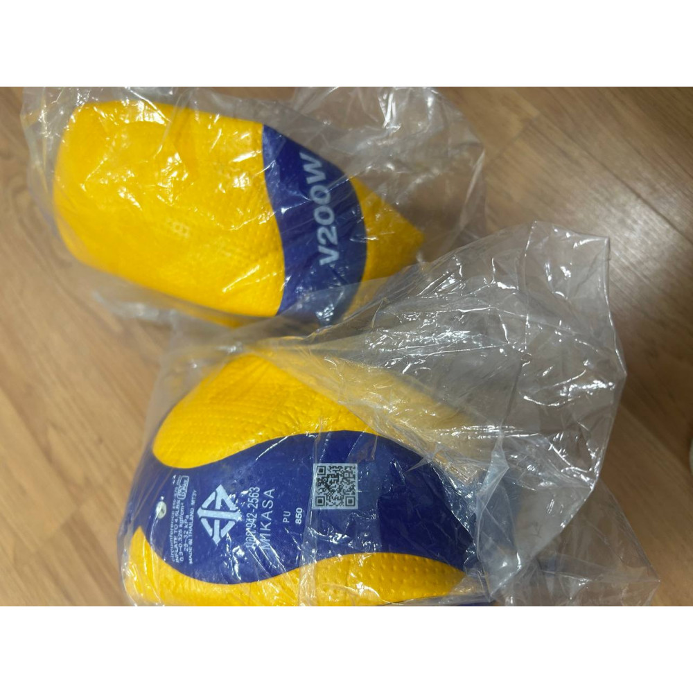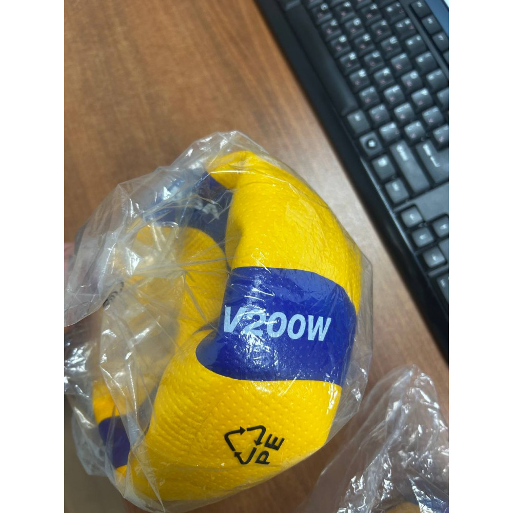 Волейбольный мяч Mikasa V200W - профессиональный мяч размера 5, весом 260-280 г, с желто-синей окантовкой, идеальный для соревнований и тренировок.